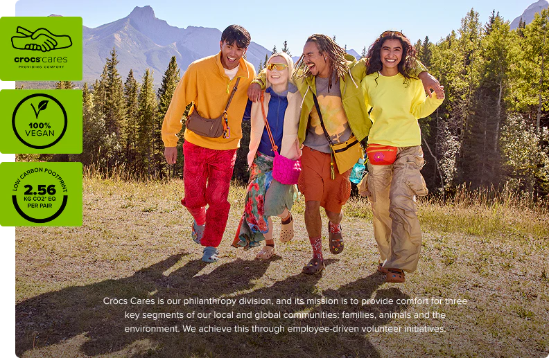 We believe that comfort is the key to happiness, and our legendary Crocs comfort makes the world a happier place, one pair of shoes at a time.